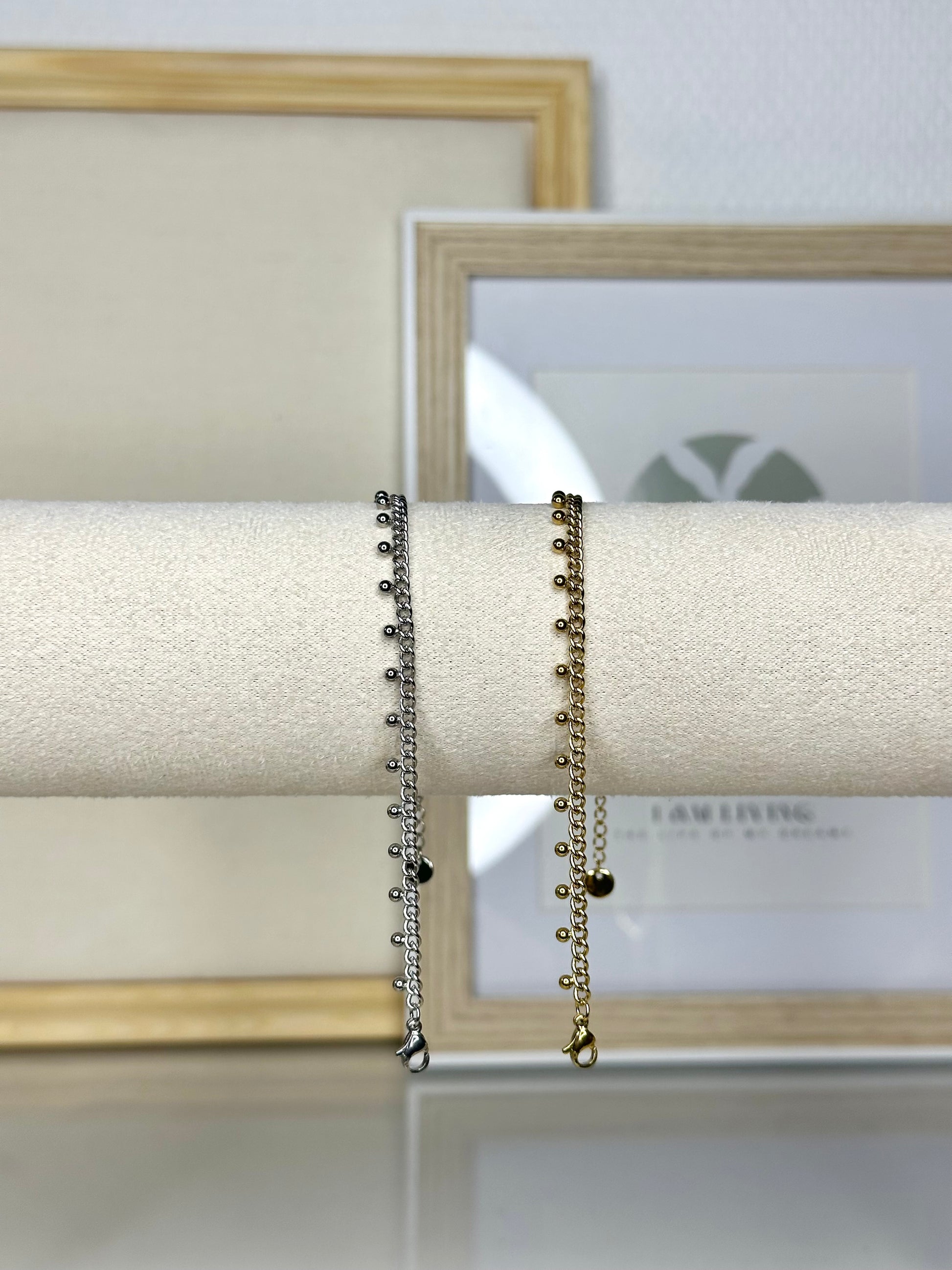 Minimaliste et audacieux à la fois, Ivory séduit par sa structure fine et rythmée. Ses maillons perlés en laiton antique créent une silhouette raffinée au caractère unique, comme un clin d’œil aux bijoux vintage réinventés.
