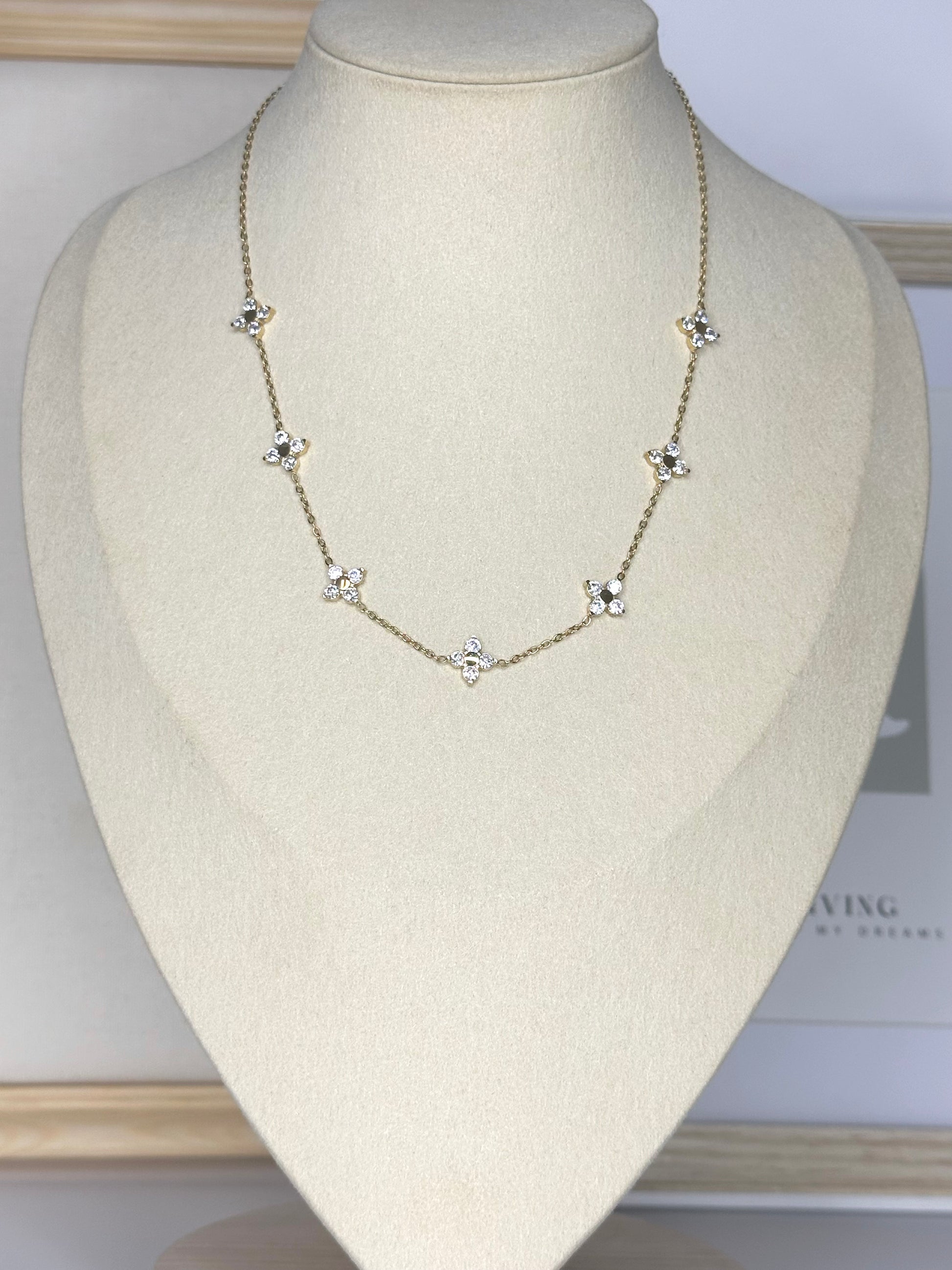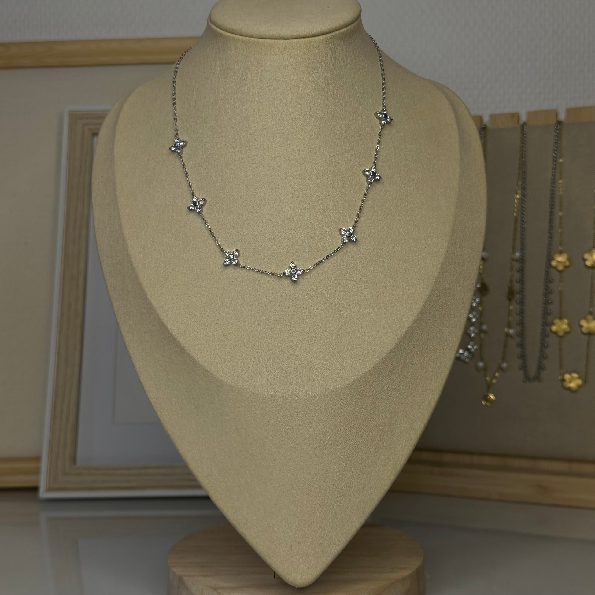 Le collier Kloé incarne l’élégance discrète et intemporelle. Orné de délicates petites fleurs scintillantes, il apporte une touche raffinée à toutes vos tenues, du quotidien aux occasions spéciales.Son design minimaliste et féminin illumine le cou avec subtilité, tout en ajoutant une note sophistiquée.