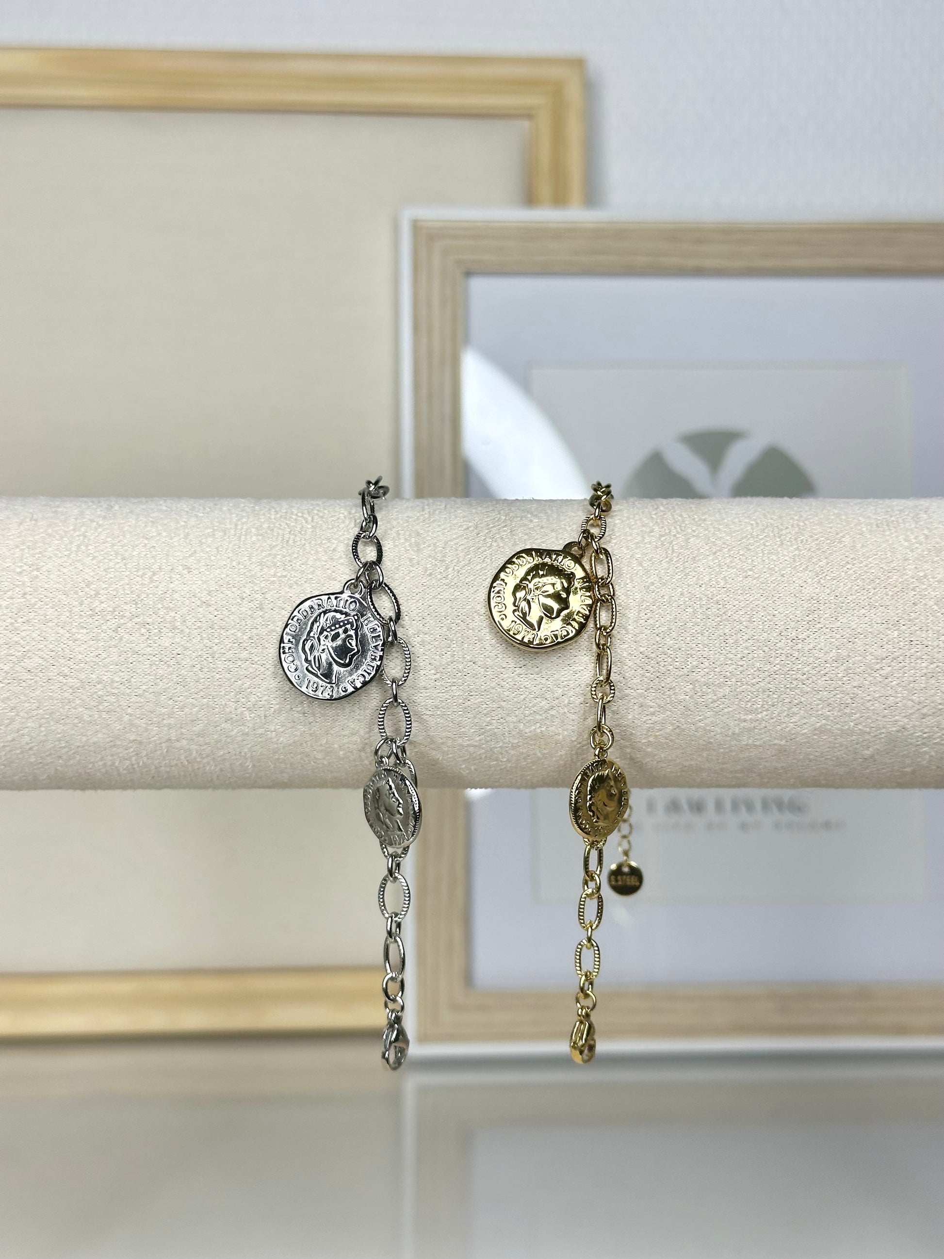 Louisa, un bracelet intemporel qui mêle élégance et caractère, est orné de pendentifs inspirés de médaillons anciens. Sa chaîne en or aux maillons audacieux est sublimée par des pièces gravées qui rappellent le charme de l’histoire et du patrimoine.