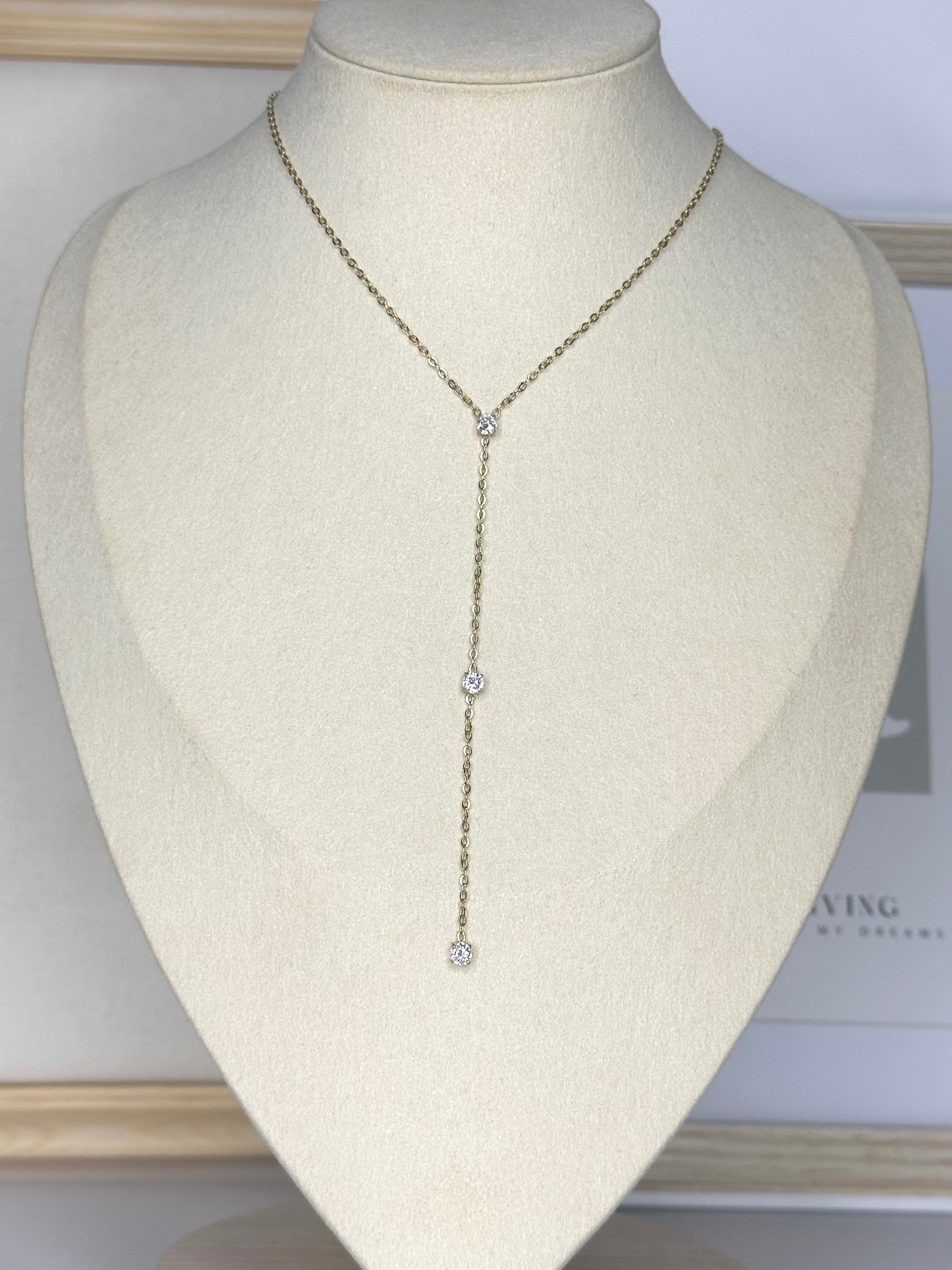Le collier Maïa séduit par son élégance minimaliste et sa délicatesse. Sa fine chaîne met en valeur trois cristaux scintillants subtilement alignés, créant une silhouette allongée et raffinée.