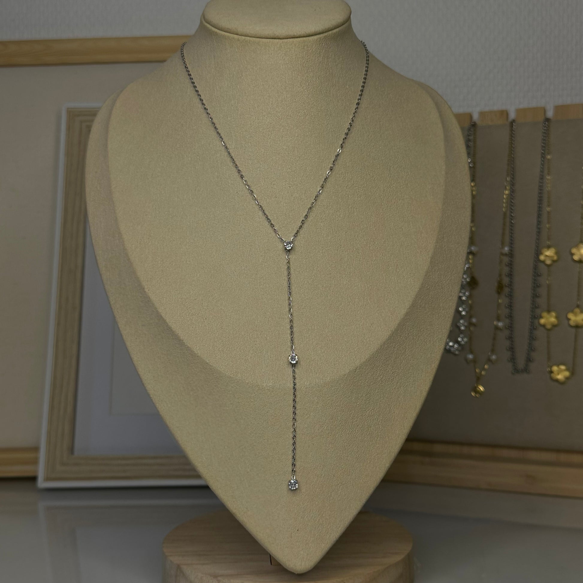 Son design en Y sublime le décolleté avec grâce, ajoutant une touche lumineuse et féminine à toutes vos tenues, qu’elles soient casual ou habillées.