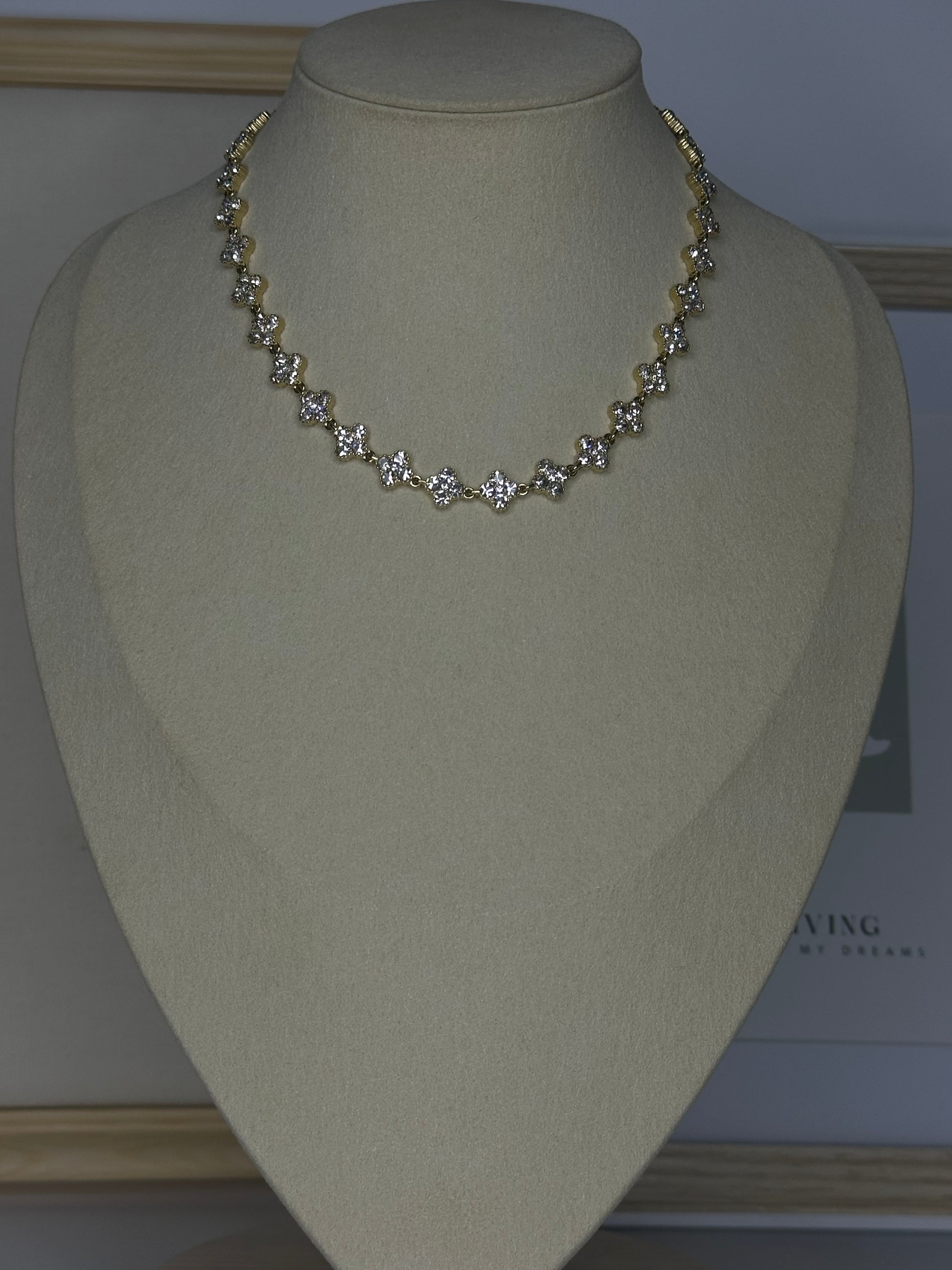 Brillant comme une constellation, le collier Naylaa habille le cou d’un éclat précieux. Chaque pierre finement sertie reflète la lumière avec intensité, créant un jeu scintillant à chaque mouvement.