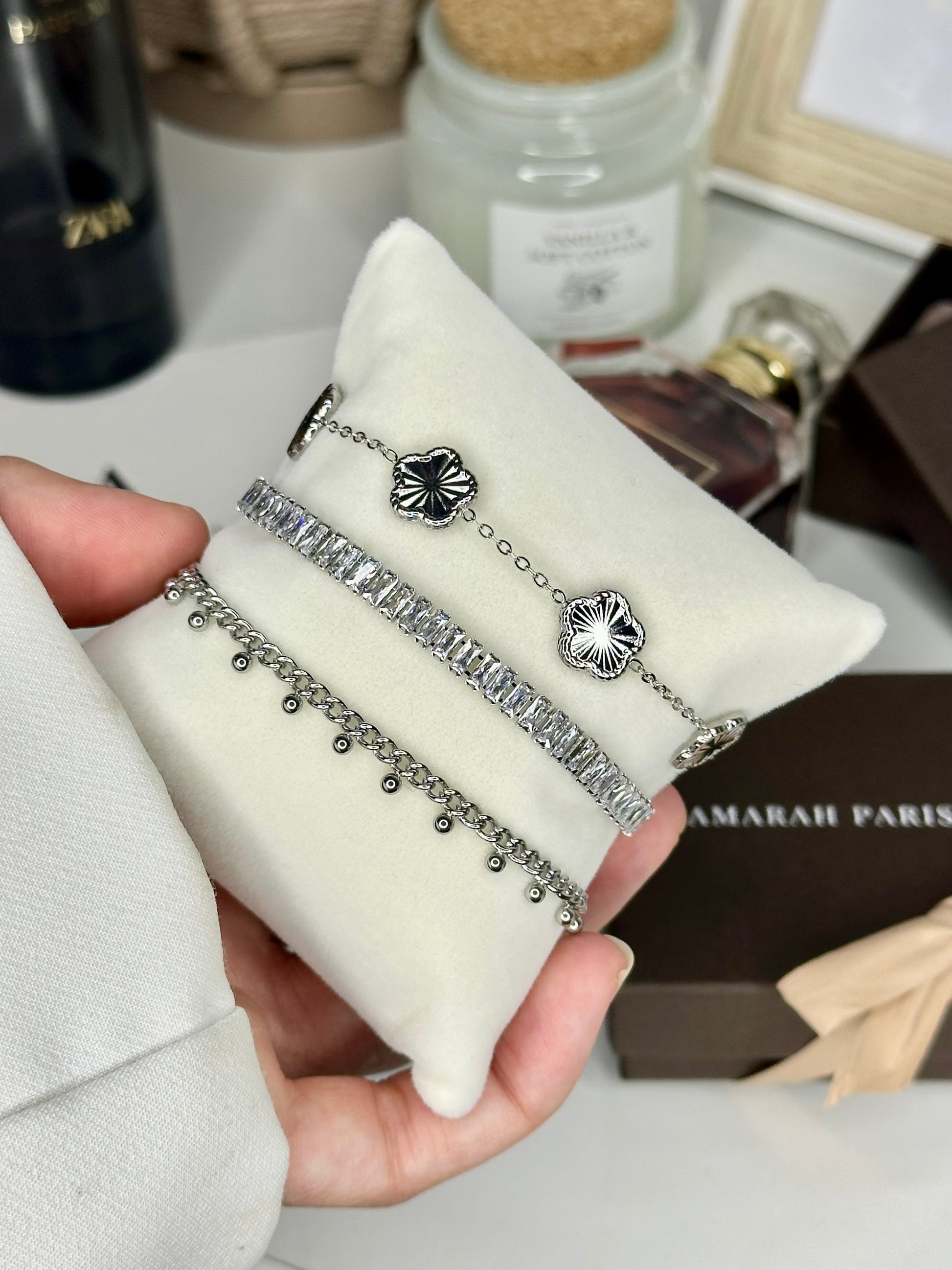 Un trio intemporel qui illumine le poignet avec discrétion et chic, idéal pour un style au quotidien comme pour les grandes occasions.