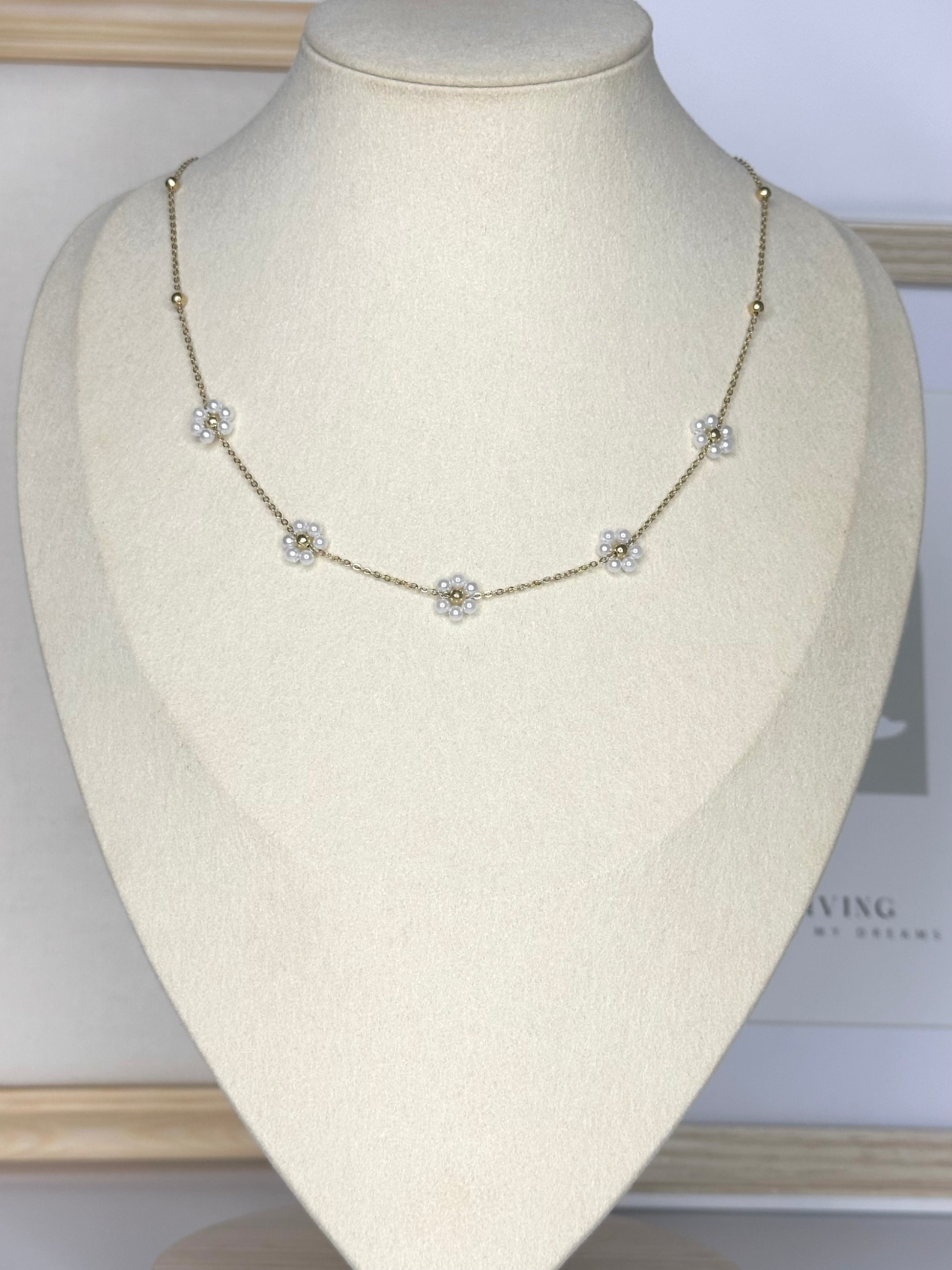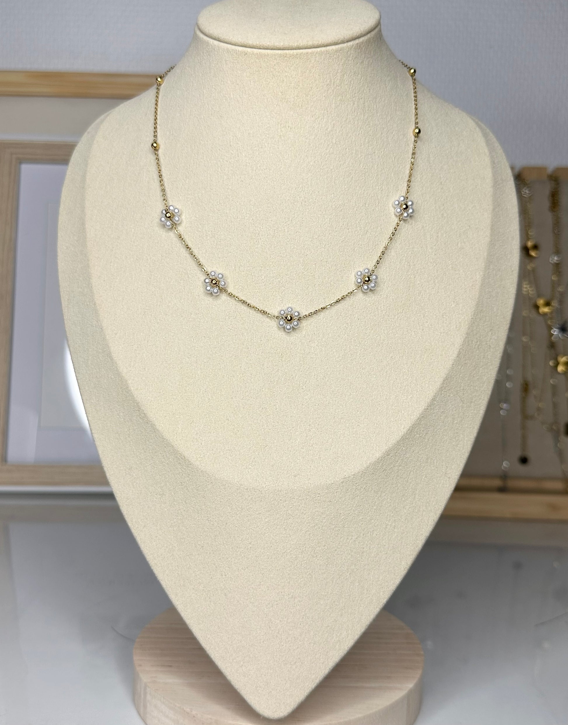 Délicat et lumineux, Yasmina s’inspire de la finesse des fleurs. Chaque perle blanche est minutieusement travaillée pour créer un motif floral élégant, tout en douceur et en légèreté.