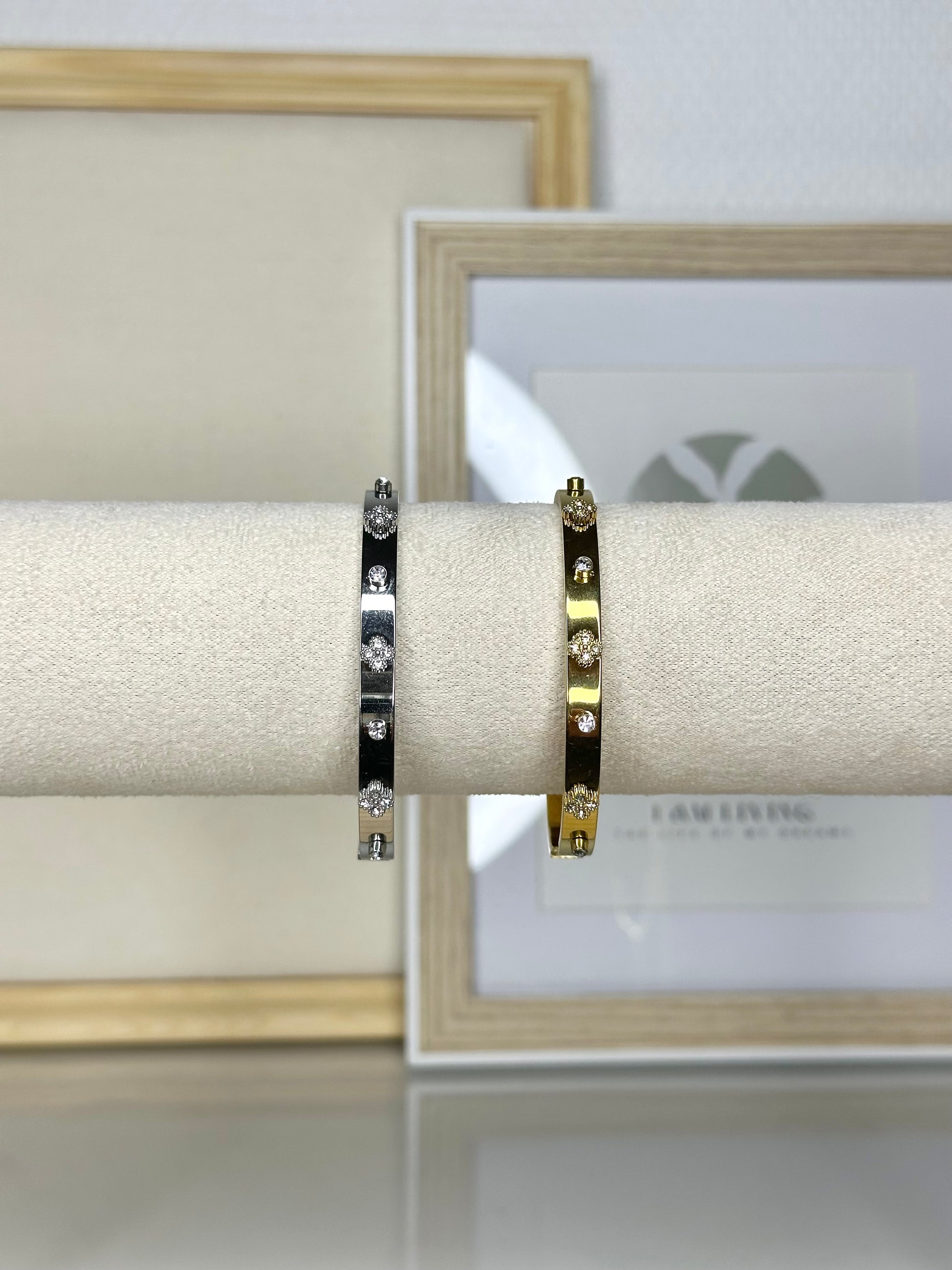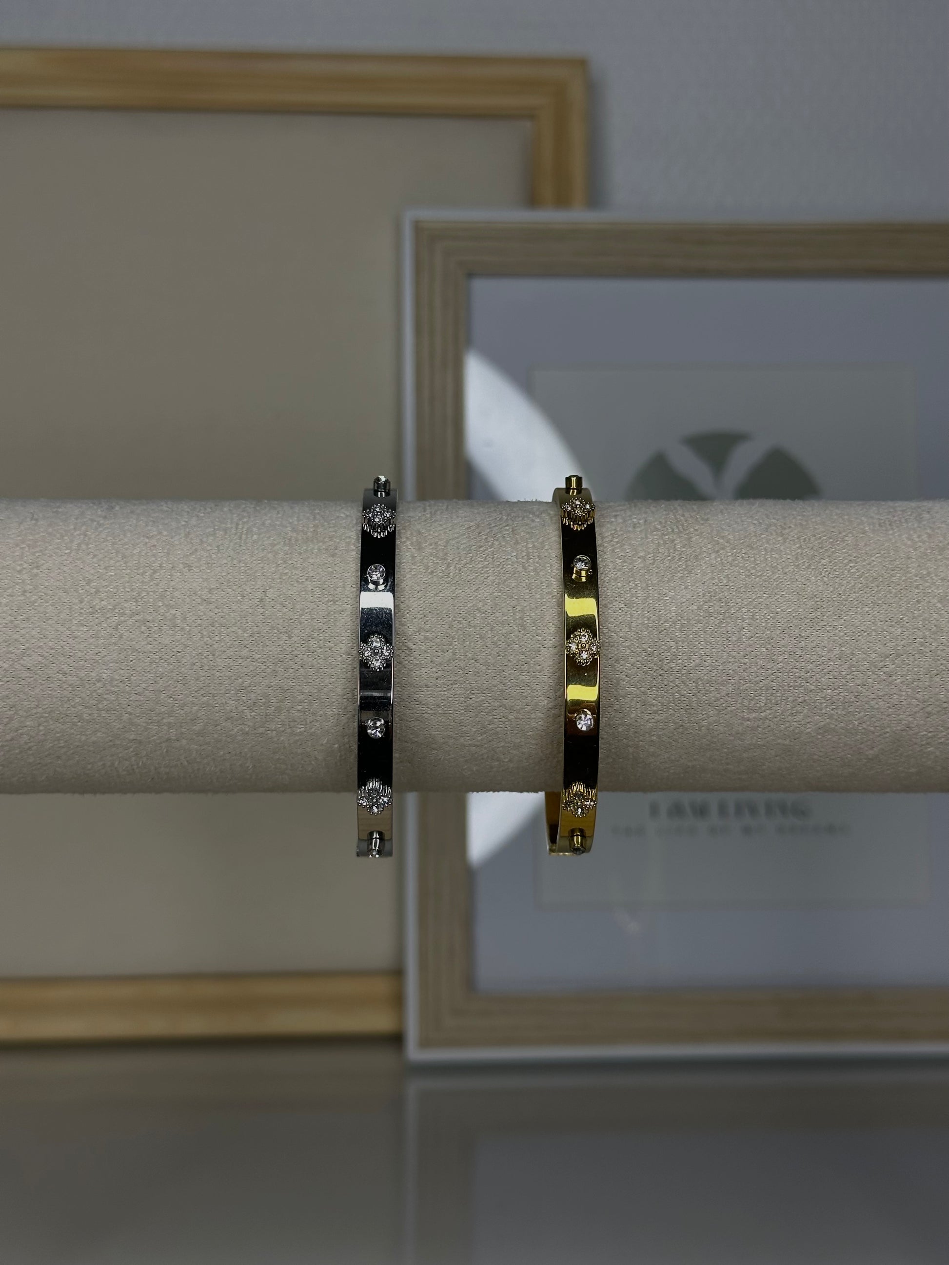 Le bracelet Yasmine incarne l’élégance discrète et la douceur d’un bijou pensé pour illuminer le quotidien. Son design raffiné mêle un bracelet avec des strass. Idéal seul pour un look minimaliste ou superposé pour un effet plus affirmé, le Yasmine se porte facilement, une touche précieuse qui rehausse toutes vos tenues.